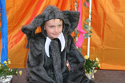 Bei dem Auftritt trugen die Jungen und Mädchen Kostüme, die von den engagierten Müttern genäht wurden. Ob Balu im großen braunen Kuschelpullover mit dickem Bauch und Bärenmaske, Mogli in seinem roten Hüftschal, verziert mit grünen Blättern, oder die vier Geier mit spitzen Schnabelmasken und langen Fliedergewändern aus schwarzen Kreppbändern – sie waren alle überzeugend gut.